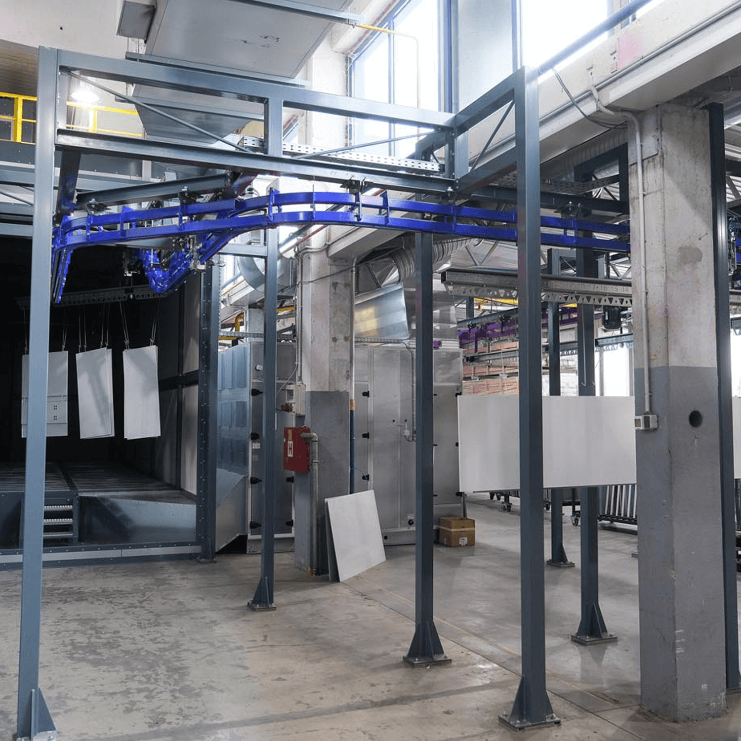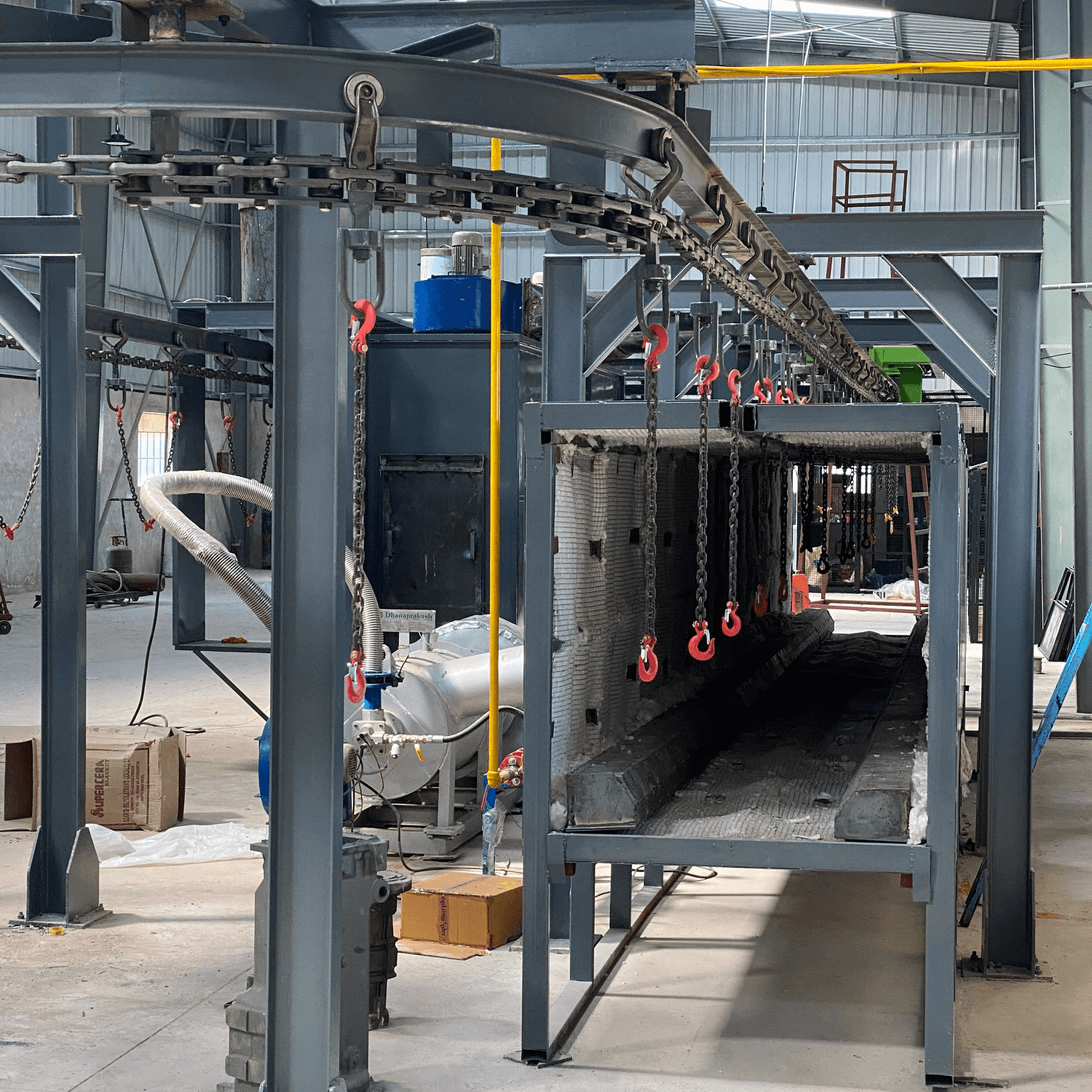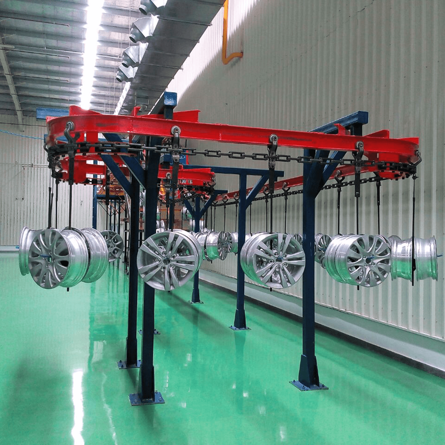A Power & Free Overhead Conveyor is an advanced dual-track system that offers maximum flexibility and control. The “power” track drives the chain, while the “free” track allows individual carriers to accumulate, stop, or divert independently — ideal for automated and high-mix production systems.